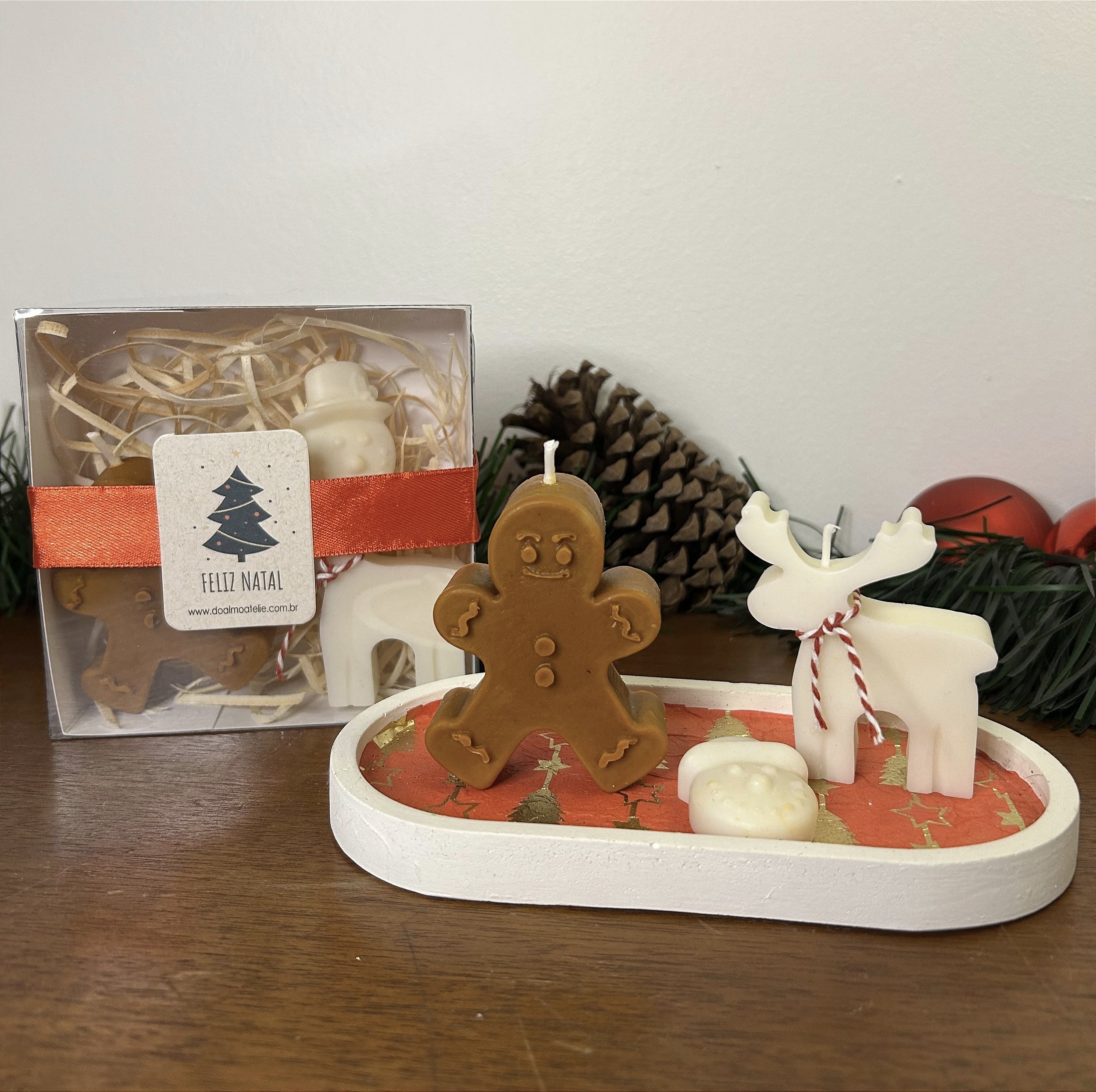 Celebre o espírito natalino com o charme do nosso Kit de Velas Decorativas. Com duas velas, podendo escolher entre duendes, árvore de Natal/floco de neve, rena/biscoito de gengibre e duende/biscoito de gengibre, simbolizando a essência das festas. Ideais para presentear ou dar um toque único à sua decoração natalina.